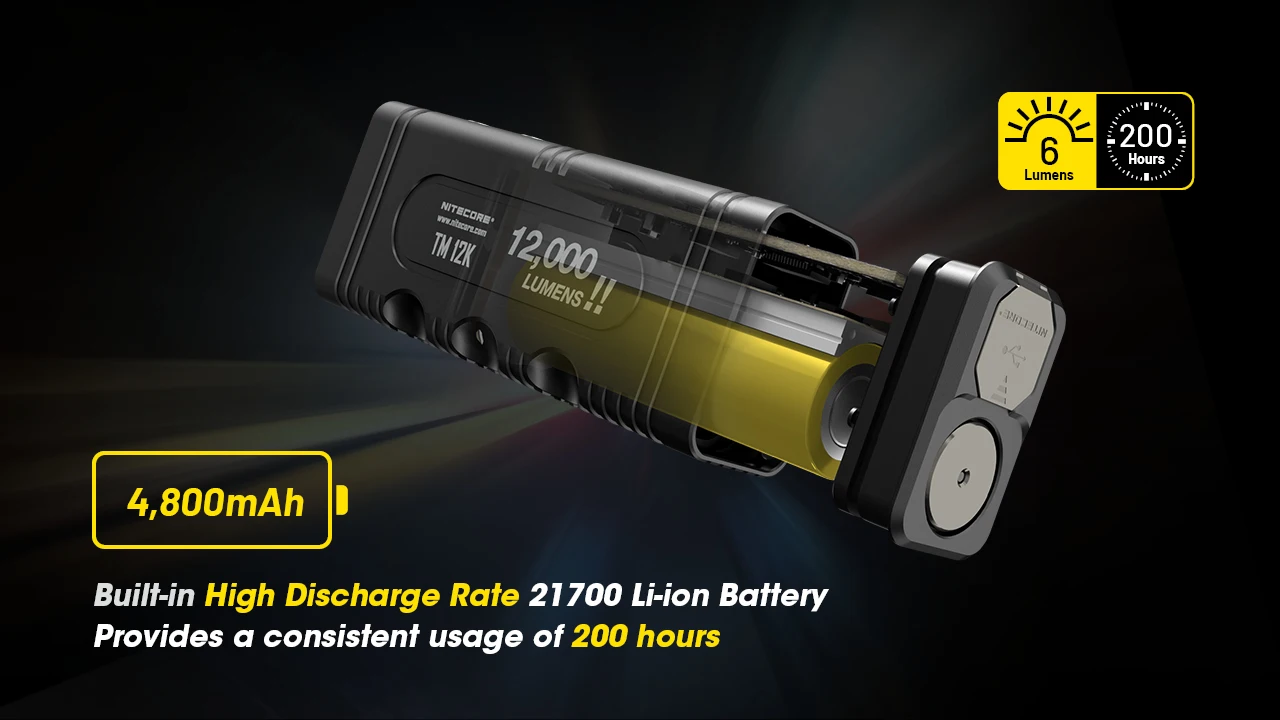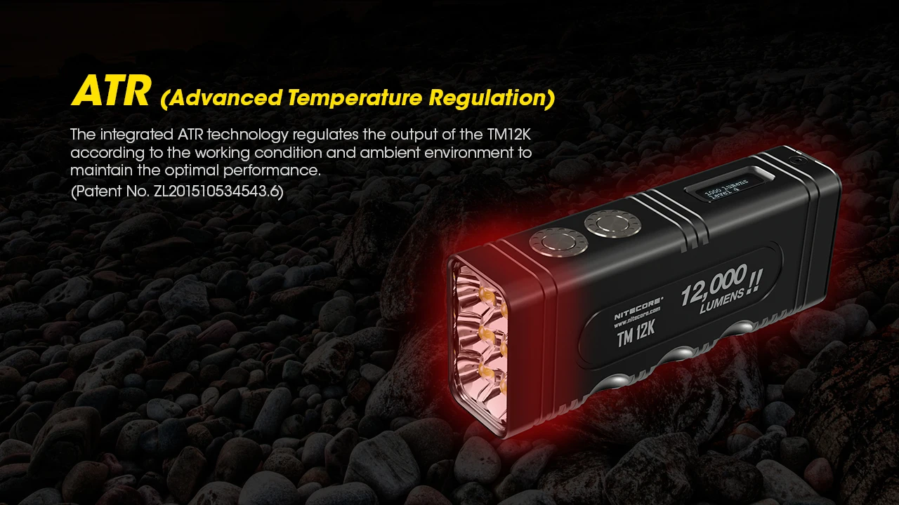 • The NITECORE TM12K is a high-power rechargeable flashlight engineered for professionals who demand serious performance. Delivering an incredible 12,000 lumens of intense white light, this tactical torch provides powerful illumination in a compact, mission-ready design.