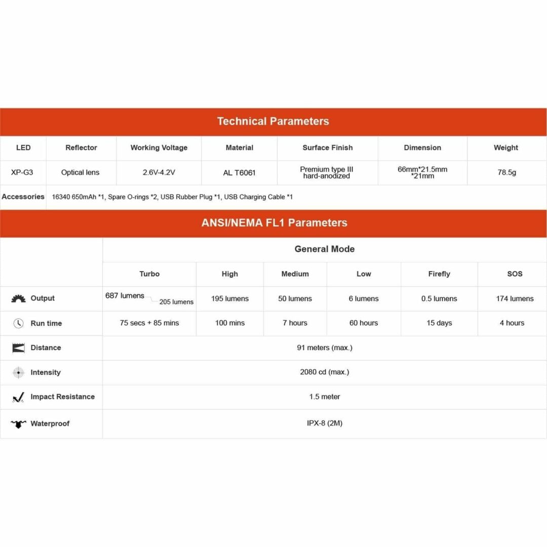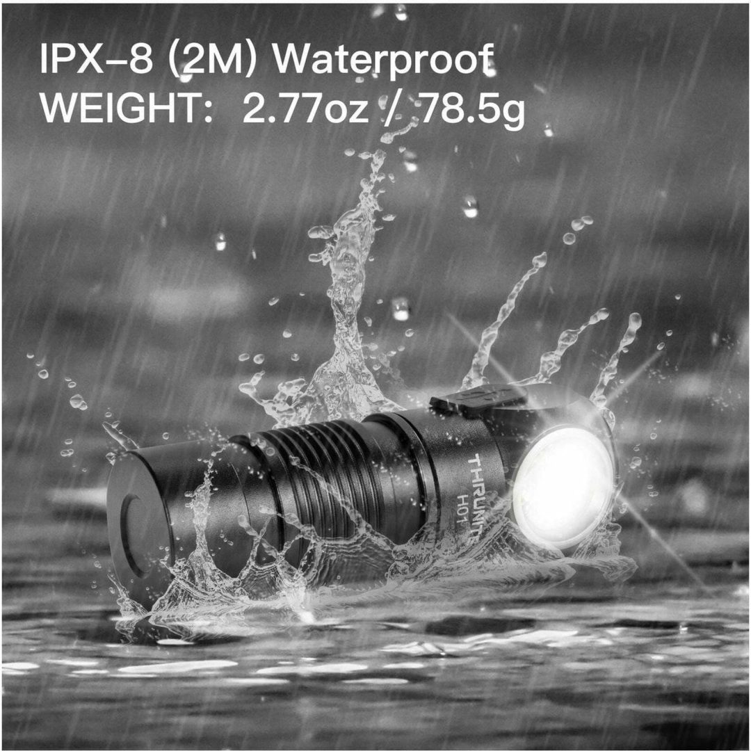 BUILT TO LAST – Weighing just 2.77oz/78.5g, the H01 flashlight, crafted from aircraft-grade aluminum, promises both lightness and durability. With an IPX-8 waterproof rating, it stands up to the elements, making it a reliable companion in any environment.