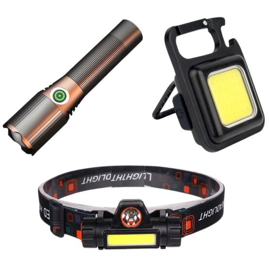This premium set includes three high-power LED flashlights, engineered for customers who demand reliable lighting for outdoor use, emergency situations, security work, camping, and everyday carry.