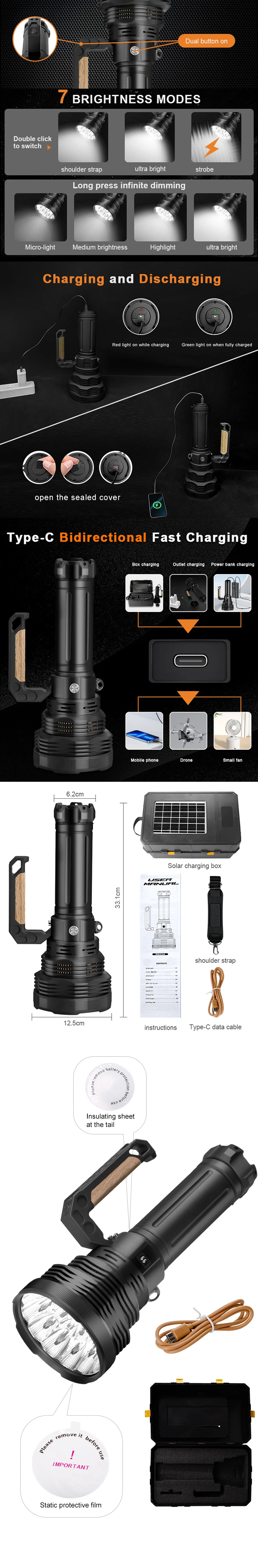 The ULTIMATE TORCH W5224-K is a professional-grade high-power searchlight engineered for extreme brightness and serious emergency use. Producing a massive 65,000 lumens with a beam distance of 1,000 meters and beyond, this torch is built for security teams, farm patrol, search & rescue, disaster response, and load-shedding emergencies.