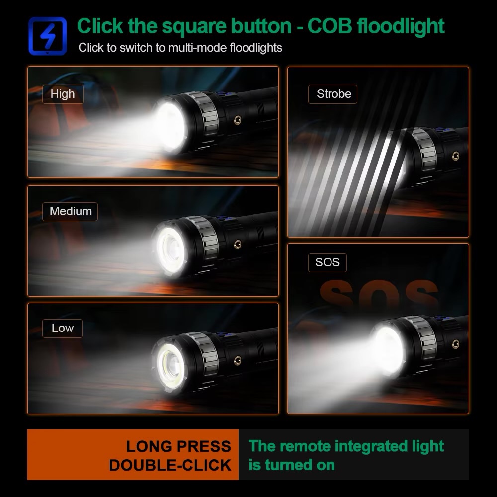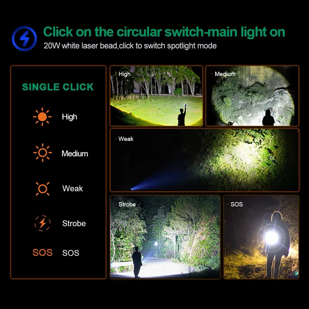 Massive flood + distance power (18000 lm COB + Laser LED)