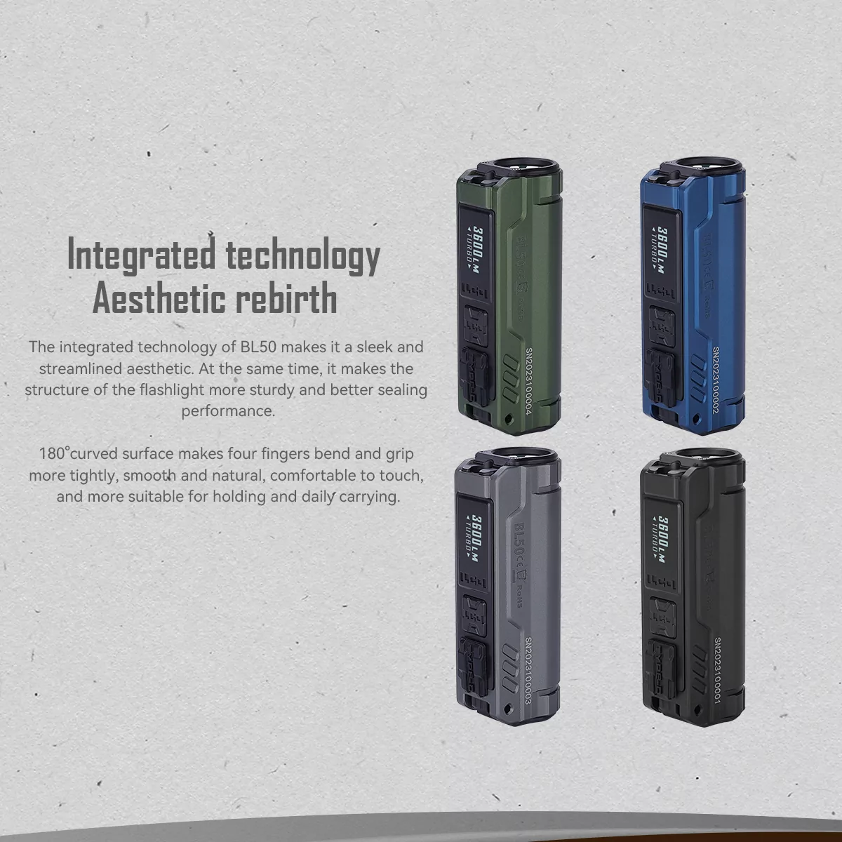 Compact and ergonomic design for a comfortable hold, weighing only 158g