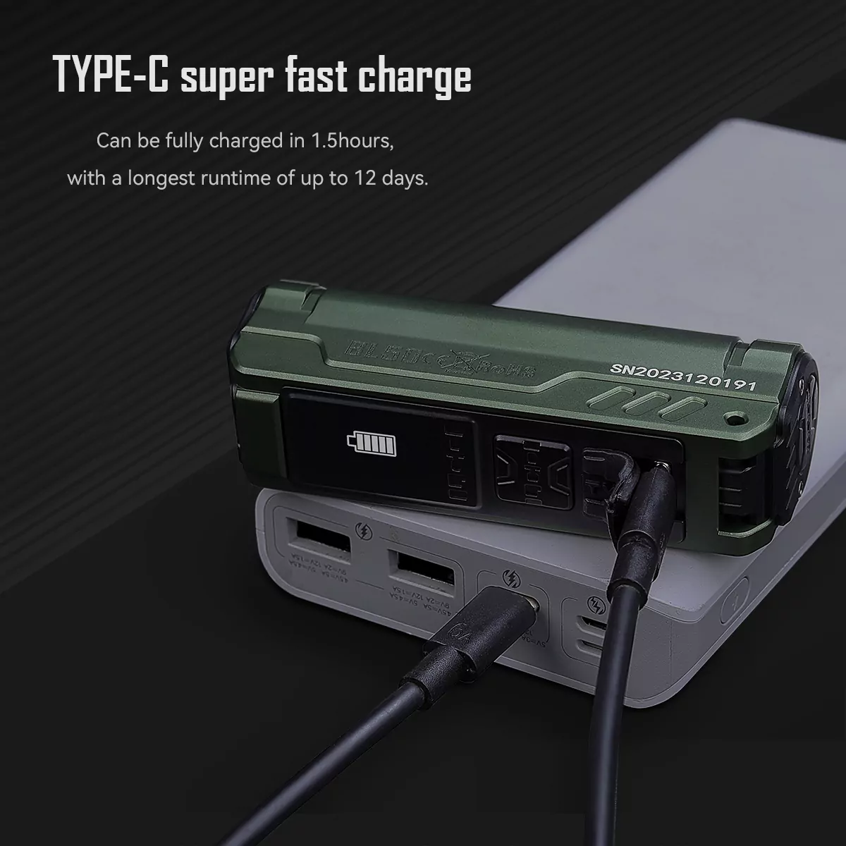 OLED display for real-time battery status, brightness, and runtime information