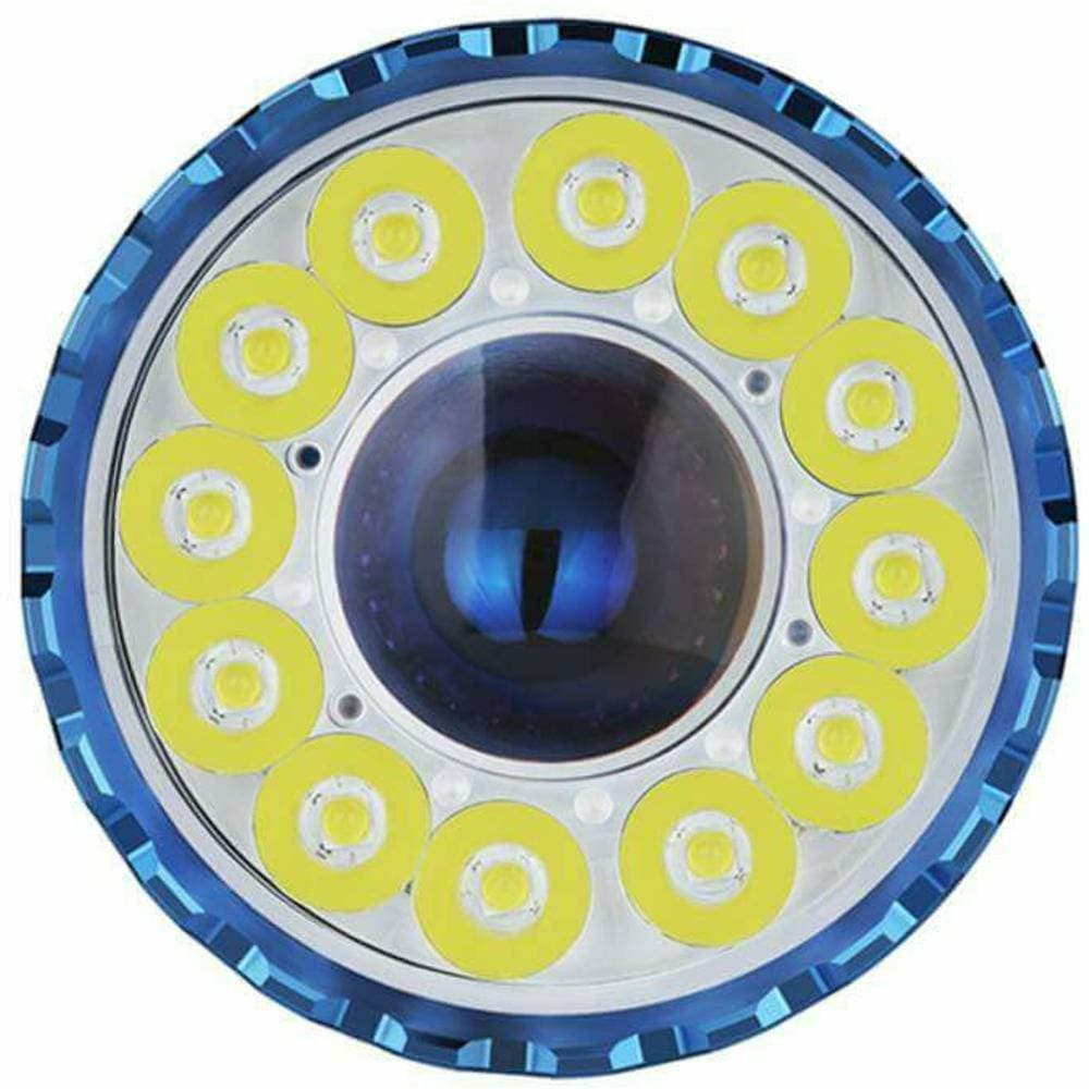 - Large central LED for an 800-meter spotlight beam and 12 surrounding LEDs for a 14,000-lumen floodlight beam.