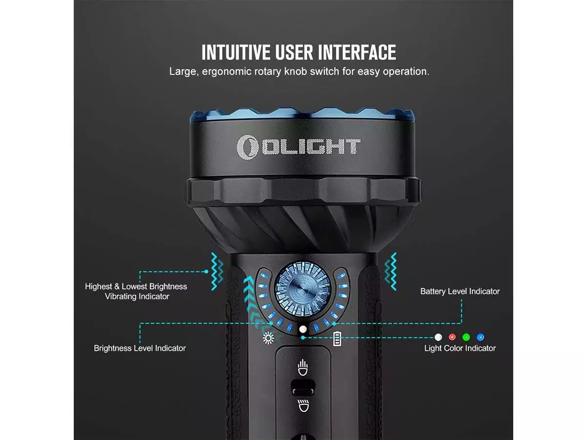 And, in a pinch, you can still switch between Floodlight and Spotlight thanks to the Toggle Switch. With the flick of a switch, you can access the setting you need most. Olight’s straightforward design makes it easy to access a lot of settings in any state of mind, so you can use your light with precision when you need it most!