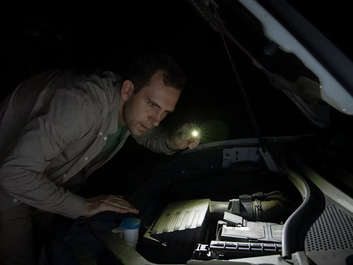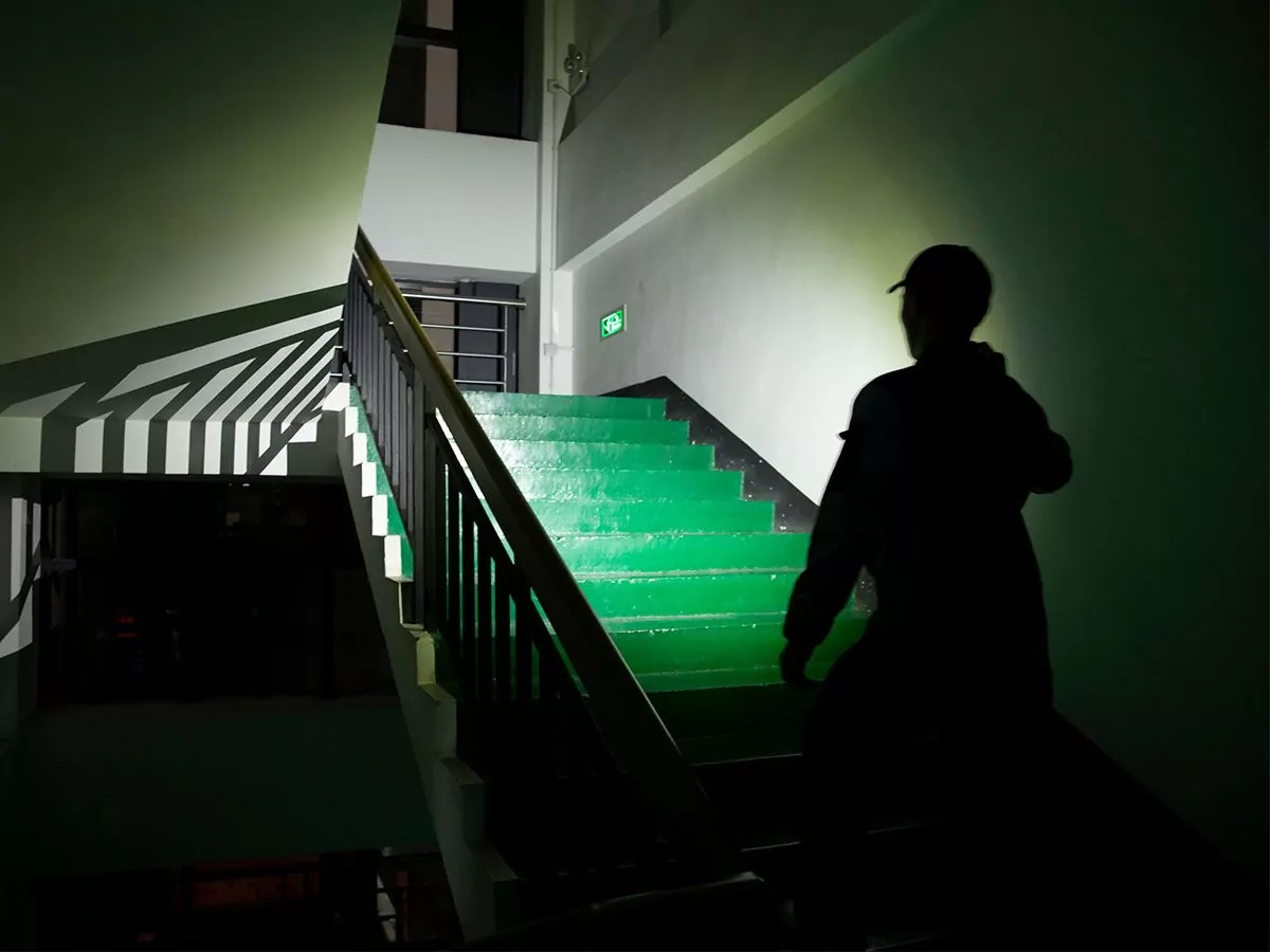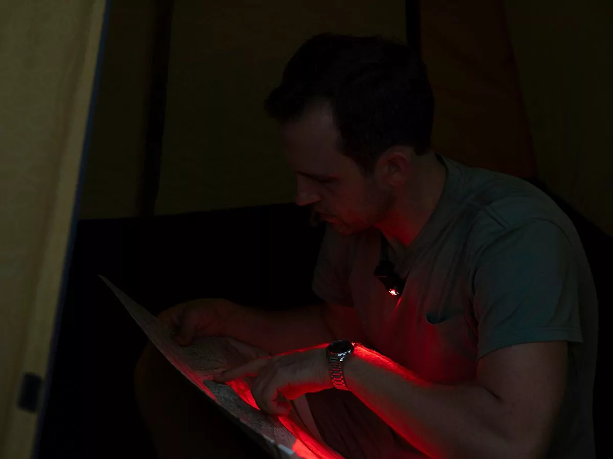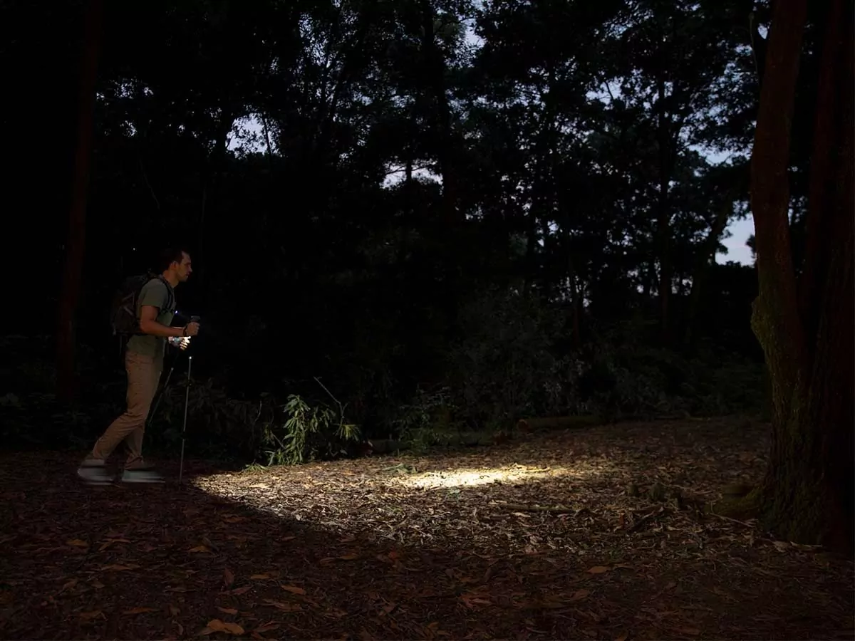 - Spot and flood beam output for navigating or surveying trails