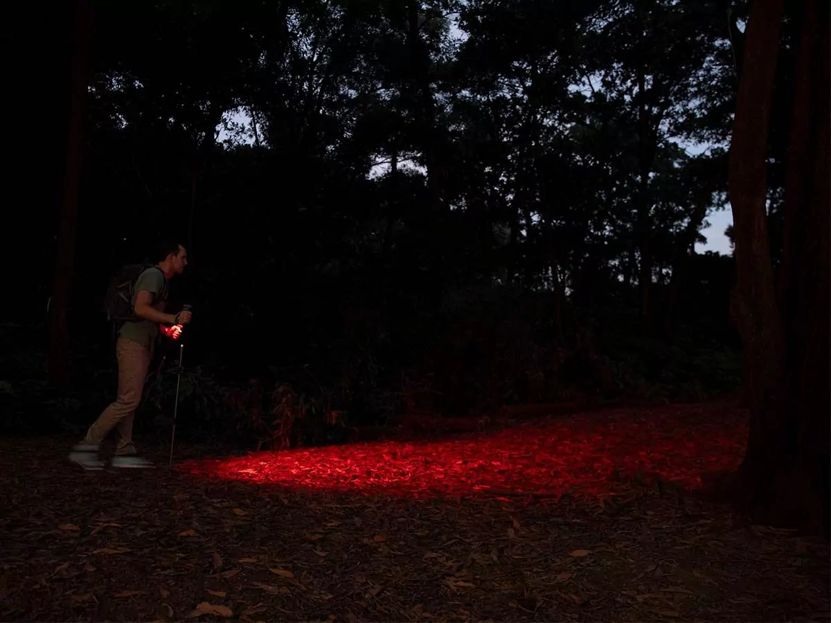 - Red light LED protects night vision and won’t startle wildlife