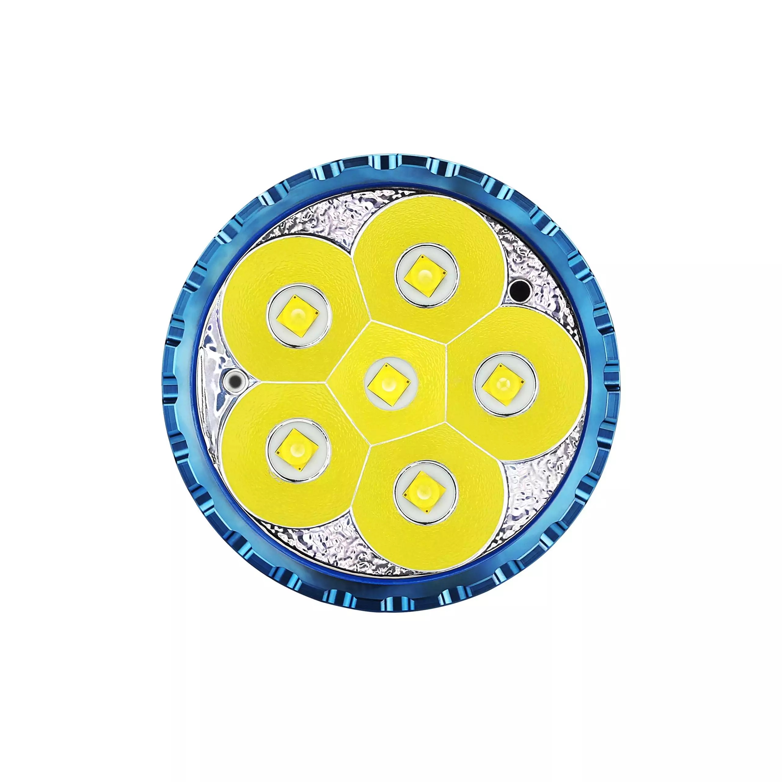 The X9R flashlight is equipped with six Cree XHP70.2 LED and is powered by a rechargeable battery pack combining eight high discharge rate 18650 batteries.