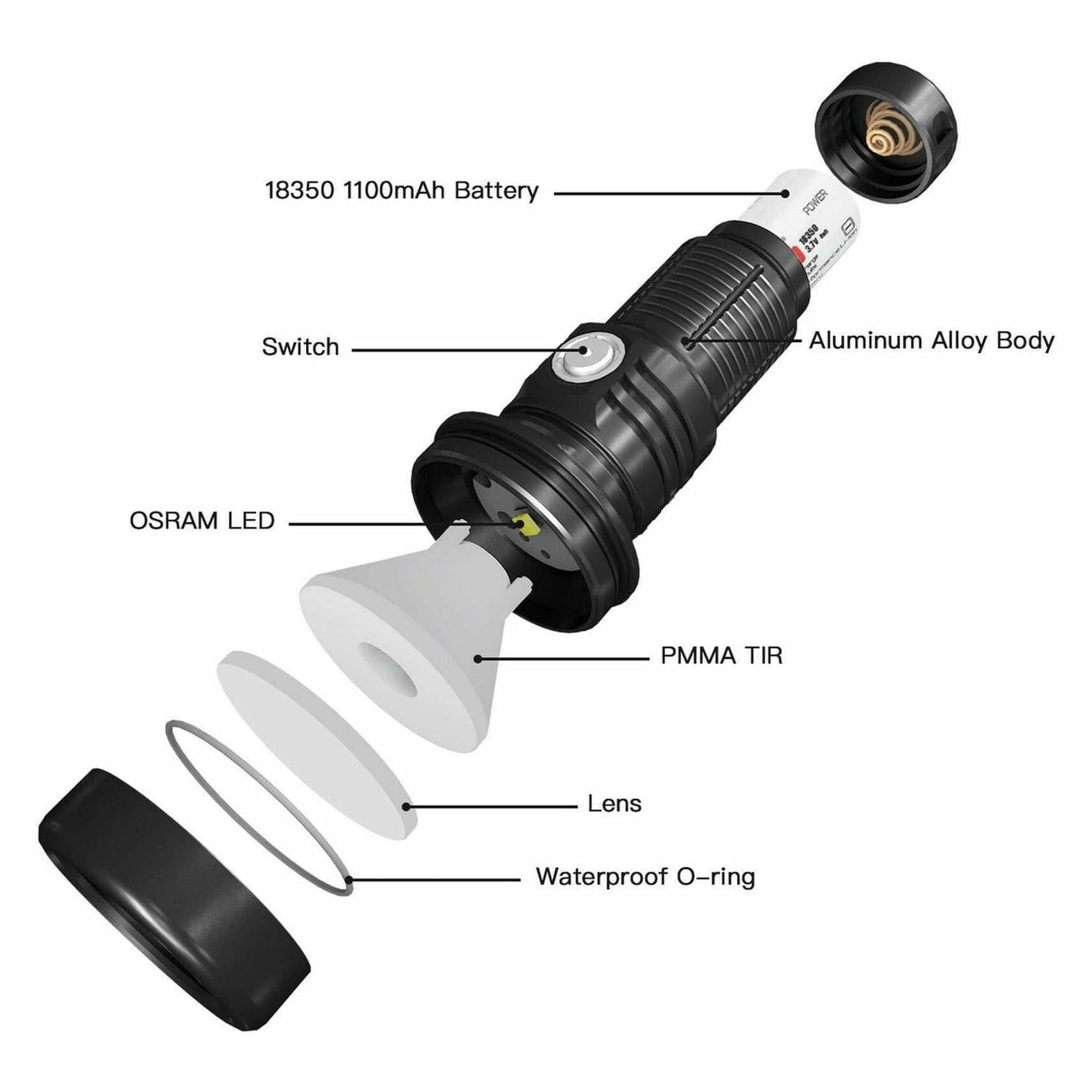 - Extended Battery Life: Comes with a rechargeable battery that supports USB Type-C fast charging, ensuring a runtime up to 106 hours on firefly mode and over an hour on the high-powered turbo setting.
