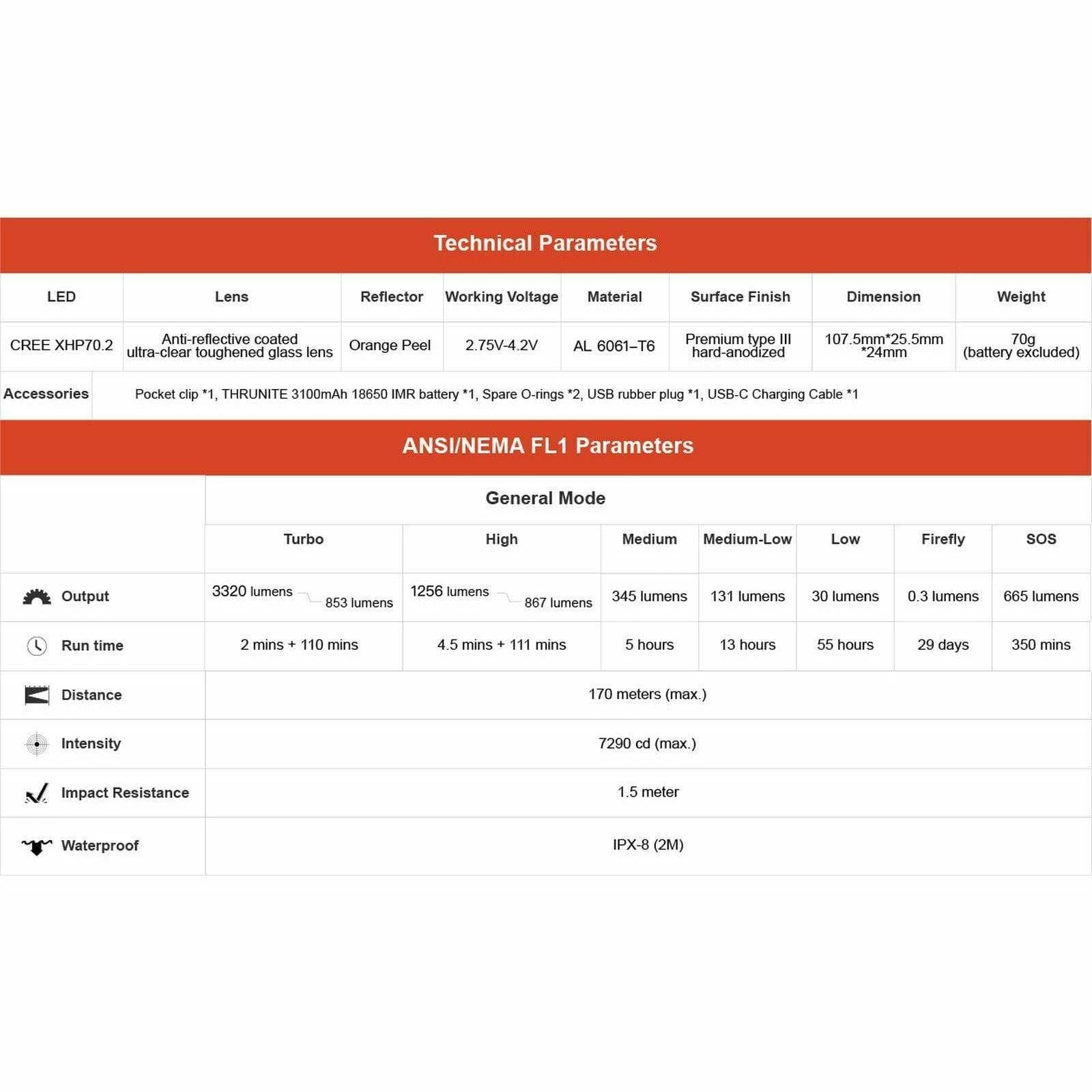Packaged Contents 1 x ThruNite TH30 V2 Headlamp.