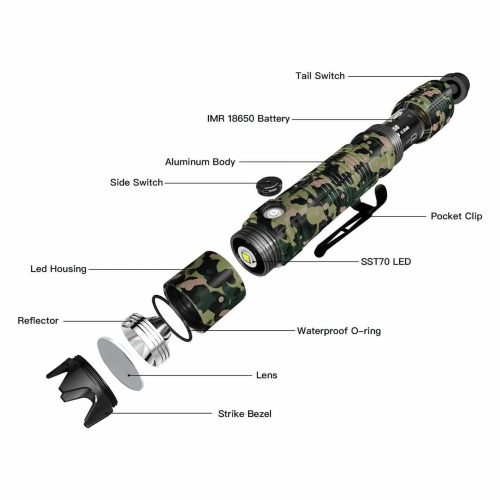 - Indicators & Modes: The flashlight provides battery level indicators, and a range of modes including low, medium, high, firefly, turbo, and strobe to cater to all your lighting needs.