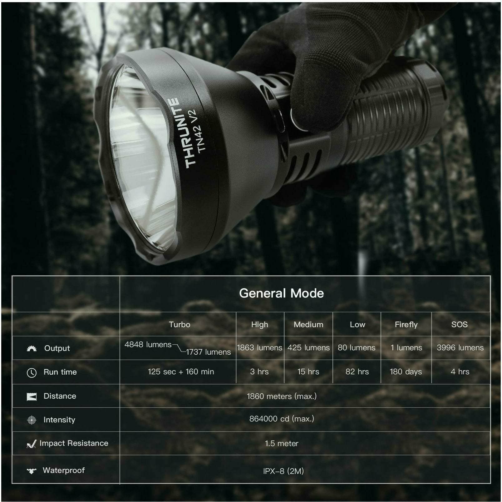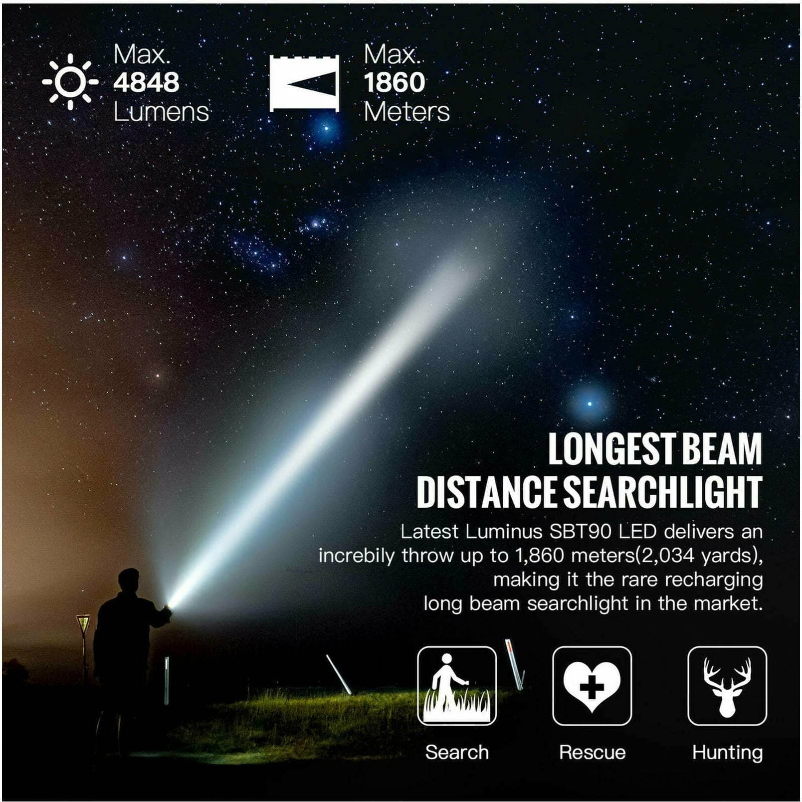 - Revolutionary Brightness: The TN42 V2 incorporates the latest SBT90.2 LED, delivering an exceptional 4848 lumens and a beam distance up to 1,860 meters, a 16.67% increase from the original TN42 – a perfect choice for search and rescue operations.
