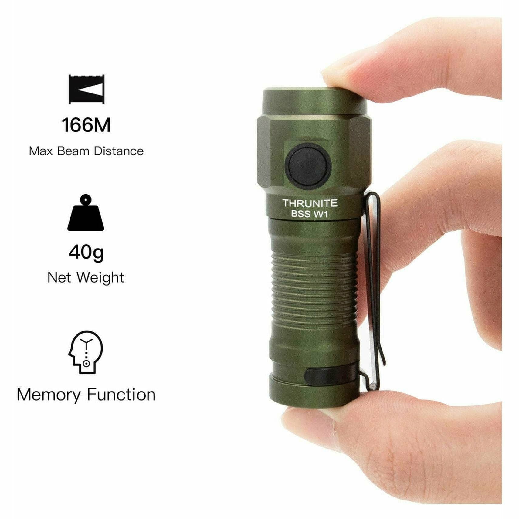 Inside the Package: 1 X ThruNite BSS W1 Black Flashlight with accompanying accessories.