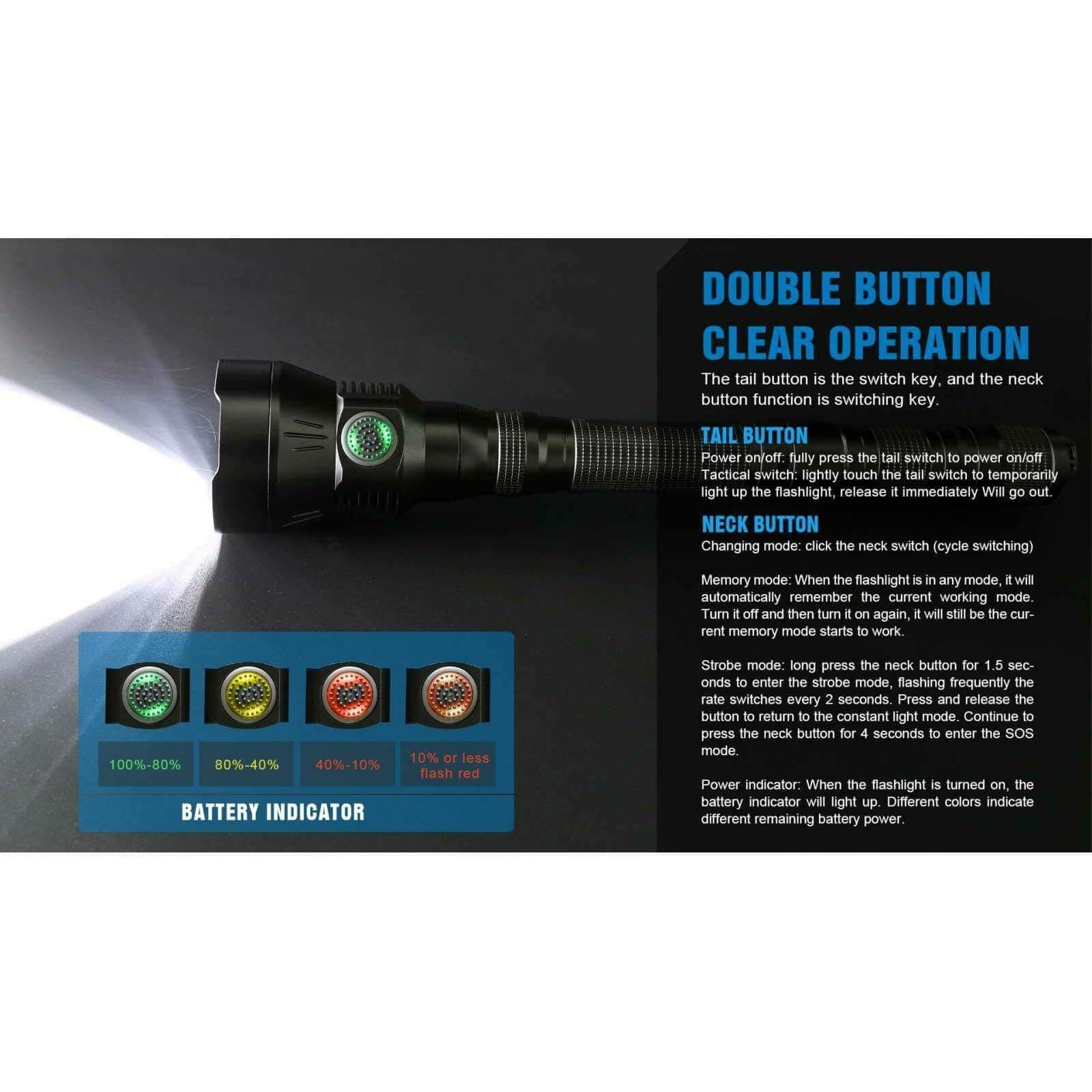 ◆ Built-in intelligent temperature control system to prevent overheating during the use of flashlight, improve the use comfort level;
